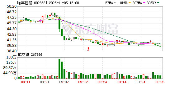 证券时报·数据宝统计显示,顺丰控股今日收盘价为39.63元,下跌0.55%,日换手率为0.56%,成交额为10.60亿元,全天主力资金净流出8618.09万元,近5日该股累计下跌2.75%,近5日资金合计净流出1.11亿元。
